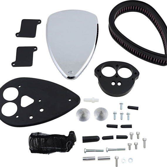 Caracteristicas: Slim 1-1/2" hi-flow reusable filter and specially designed back plate dynamically increases air flow and velocity Complete with breather kit, mounting hardware and micron-fabric raincoat for wet-weather riding Flow-bench and dyno-designed for substantially increased horsepower and torque Innovative styling enhances and accentuates your "V" Twin engine Easy-to-follow instructions included for a do-it-yourself install Set-back, thin-line design does not interfere with rider's leg Maximizes overall performance and fuel efficiency Made in the U.S.A.