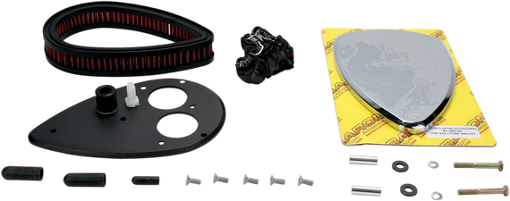 Caracteristicas: Slim 1-1/2" hi-flow reusable filter and specially designed back plate dynamically increases air flow and velocity Complete with breather kit, mounting hardware and micron-fabric raincoat for wet-weather riding Flow-bench and dyno-designed for substantially increased horsepower and torque Innovative styling enhances and accentuates your "V" Twin engine Easy-to-follow instructions included for a do-it-yourself install Set-back, thin-line design does not interfere with rider's leg Maximizes overall performance and fuel efficiency Made in the U.S.A.