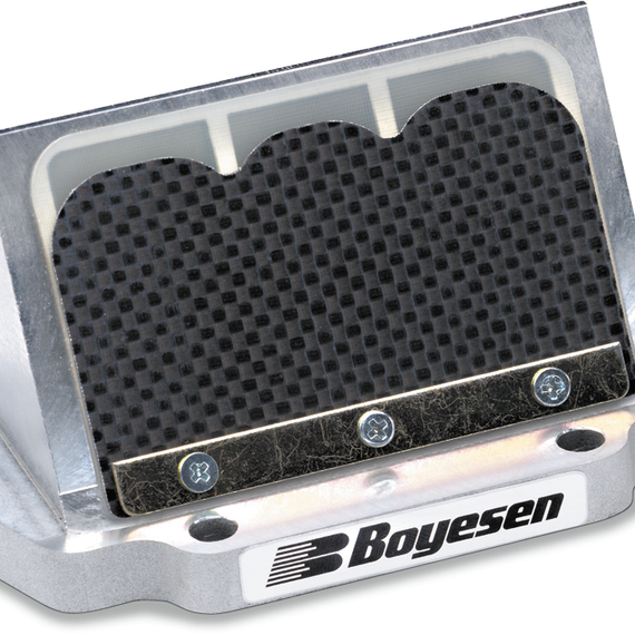 Caracteristicas: Maintain flow velocity through the valve and redirect intake charge for more even distribution to intake ports Provide quicker, sharper throttle response and more horsepower throughout rpm range Specially-designed reed cage holds Boyesen's patented dual-stage reeds Boyesen's hot RAD valves ratchet up your torque One-piece cast aluminum bolts in easily Order one set per cylinder