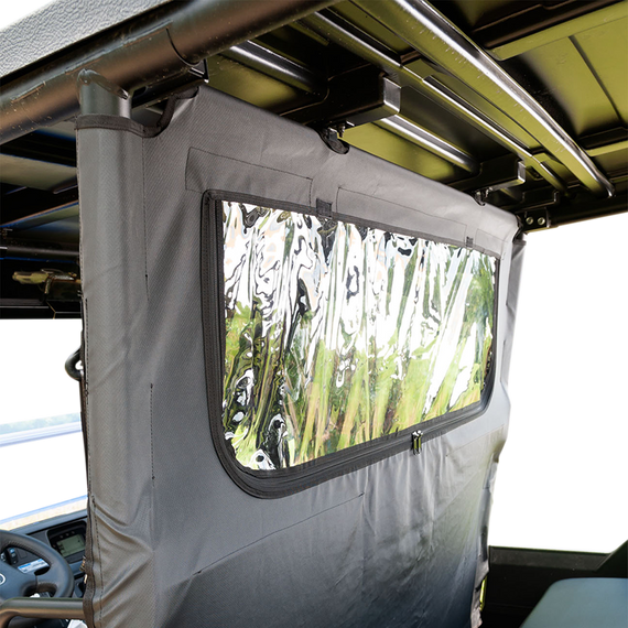 • Designed to provide a tight fit, the Soft Rear Dust & Window Panel keeps out the dust, wind, and rain that comes in with the back-draft on UTV’s that have windshields and roofs installed
