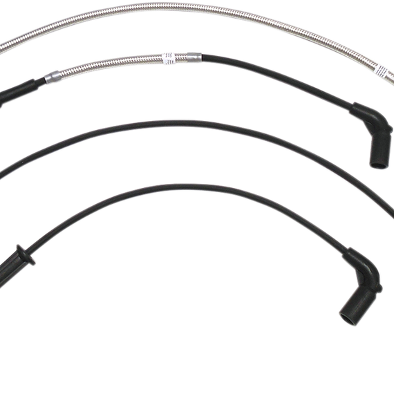 Caracteristicas: Braid perfectly matches all other MAGNUM cables and brake lines High-voltage, high temperature 8mm silicone ignition wire with an OE style, high-performance suppression conductor core for compatibility with all H-D ignition systems Heavy walled extreme duty crystal clear FEP Fluoropolymer outer insulation eliminates the need for grounding wires and insures no interference with late model computer modules. Stainless steel posi-lock terminals and silicone boots ensure maximum performance and clean spark delivery. Direct fitments for ease of installation