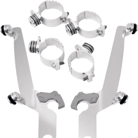 Caracteristicas: Gone are the days of fumbling with tools to remove your windshield The revolutionary No-Tool Trigger-Lock hardware features an innovative system that allows you to quickly and easily remove your windshields without the use of any tools A pair of latches lock the windshield down until the spring loaded "trigger locks" are intentionally disengaged, allowing the rider to remove the windshield Hardware is fully adjustable to achieve just the right windshield angle Kits are custom-fit to each style of bike for a truly no-hassle installation Made in the U.S.A.