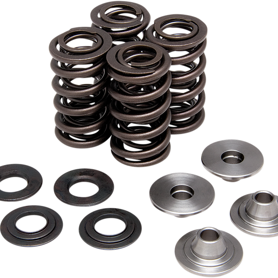 Caracteristicas: Spring kit is designed with increased spring rates and high lift compatibility compared to the stock springs Compatible with boosted or turbocharged applications CNC-machined titanium retainers and Cr-Si dual springs provide valvetrain control at high rpms with high-performance camshaft capability Kit includes 12 titanium retainers, 12 CrSi Valve Springs and 12 H.T. Steel Basewashers