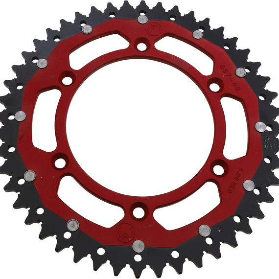 Caracteristicas: Designed to outlast standard aluminum rear sprockets and is much lighter than steel rear sprockets Inner ring is made from 7075 T6 aluminum and the outer ring is made from heavy duty steel Self-cleaning mud grooves between each tooth to prevent dirt build up