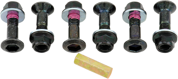 Caracteristicas: Six class 10.9 steel sprocket bolts with matching factory-style metal locking Fuji nuts Each sprocket bolt has medium-strength threadlock patches for a double lock Includes Allen key insert that adapts 8mm T-handle or socket to proper Allen key size for easy installation and removal
