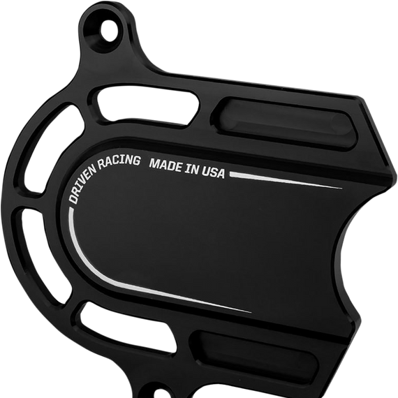 Caracteristicas: Driven sprocket cover machined out of 6061-T6 alloy Anodized finish with the Driven logo etched on the cover Replaces the plastic cover on bike Made in the U.S.A.