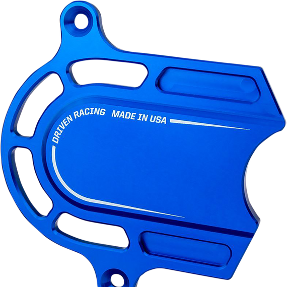 Caracteristicas: Driven sprocket cover machined out of 6061-T6 alloy Anodized finish with the Driven logo etched on the cover Replaces the plastic cover on bike Made in the U.S.A.