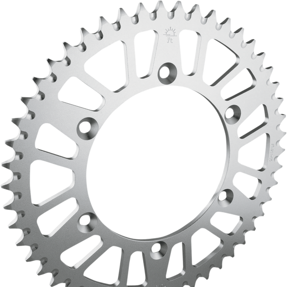 Caracteristicas: Computer designed to achieve ultimate strength at minimum weight JT combines leading-edge technology with top materials to produce the ultimate quality sprocket range with unbeatable value Every sprocket meets or exceeds the highest possible quality standards Sprockets are heat-treated and beadblasted to reduce material surface tension Front sprockets are made with top-quality Japanese C45 high carbon steel and SCM415 chromoly steel alloy Steel rear sprockets are made with top-quality Japanese C45 high carbon steel Aluminum rear sprockets are made with high strength Austrian 7075 T-6 anodized aluminum JT aluminum sprockets are about 30% lighter than a comparable steel equivalent, which reduces un-sprung rotating weight and improves performance