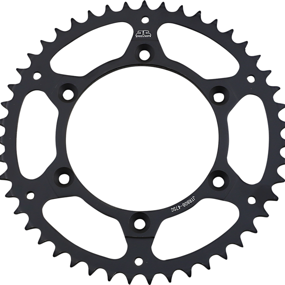 Caracteristicas: Computer designed to achieve ultimate strength at minimum weight JT combines leading-edge technology with top materials to produce the ultimate quality sprocket range with unbeatable value Every sprocket meets or exceeds the highest possible quality standards Sprockets are heat-treated and beadblasted to reduce material surface tension Front sprockets are made with top-quality Japanese C45 high carbon steel and SCM415 chromoly steel alloy Steel rear sprockets are made with top-quality Japanese C45 high carbon steel Aluminum rear sprockets are made with high strength Austrian 7075 T-6 anodized aluminum JT aluminum sprockets are about 30% lighter than a comparable steel equivalent, which reduces un-sprung rotating weight and improves performance