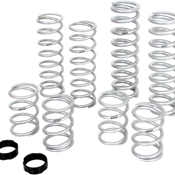 Caracteristicas: All systems include springs, sliders, stop rings and complete setup instructions Race-proven durability and quality Engineered and tested by drivers Designed for 2- and 4-seat vehicles Adjustable shock lockout collars included to allow fine-tuning of the transition point of the dual-spring setup Improves turn-in response and better power hookup out of the turns Smoother ride over rough terrain Stiffer spring rates prevent bottoming in the G-outs Made in the U.S.A.