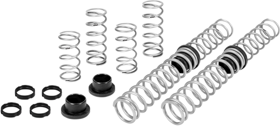 Caracteristicas: All systems include springs, sliders, stop rings and complete setup instructions Race-proven durability and quality Engineered and tested by drivers Designed for 2- and 4-seat vehicles Adjustable shock lockout collars included to allow fine-tuning of the transition point of the dual-spring setup Improves turn-in response and better power hookup out of the turns Smoother ride over rough terrain Stiffer spring rates prevent bottoming in the G-outs Made in the U.S.A.