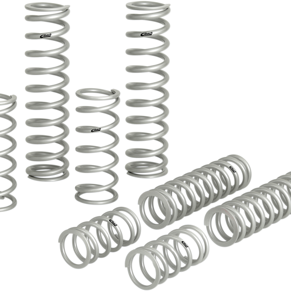 Caracteristicas: All systems include springs, sliders, stop rings and complete setup instructions Race-proven durability and quality Engineered and tested by drivers For 2- and 4-seat vehicles with higher loads and multiple passengers More aggressive spring rates keep the machine balanced Adjustable shock lockout collars included to allow fine-tuning of the transition point of the dual-spring setup Improves turn-in response and better power hookup out of the turns Smoother ride over rough terrain Stiffer spring rates prevent bottoming in the G-outs Made in the U.S.A.