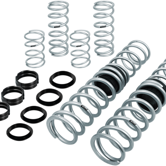 Caracteristicas: All systems include springs, sliders, stop rings and complete setup instructions Race-proven durability and quality Engineered and tested by drivers For 2- and 4-seat vehicles with higher loads and multiple passengers More aggressive spring rates keep the machine balanced Adjustable shock lockout collars included to allow fine-tuning of the transition point of the dual-spring setup Improves turn-in response and better power hookup out of the turns Smoother ride over rough terrain Stiffer spring rates prevent bottoming in the G-outs Made in the U.S.A.