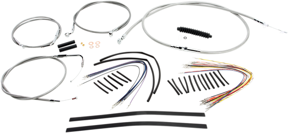 • Kits include throttle and idle cables or throttle-by-wire extensions, clutch cable or XR hydraulic clutch line, XR brake lines, copper crush washers, hardware, turn signal and switch wiring extensions