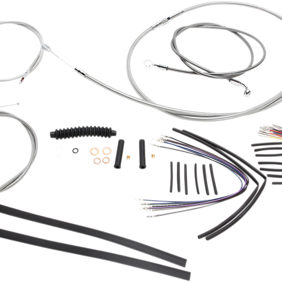 • Kits include throttle and idle cables or throttle-by-wire extensions, clutch cable or XR hydraulic clutch line, XR brake lines, copper crush washers, hardware, turn signal and switch wiring extensions