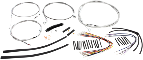• Kits include throttle and idle cables or throttle-by-wire extensions, clutch cable or XR hydraulic clutch line, XR brake lines, copper crush washers, hardware, turn signal and switch wiring extensions