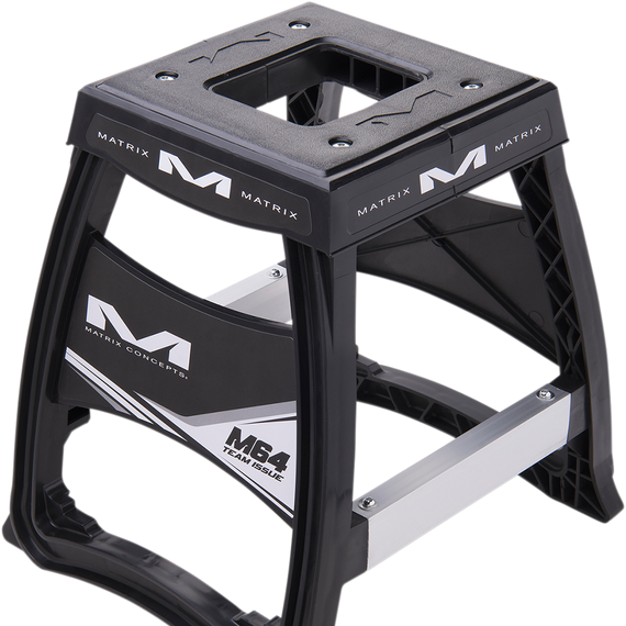 Caracteristicas: Next generation of lightweight bike stands Large plastic side panels Stable design is provided by extra-wide feet Include four rectangle anti-flex support tubes Ask a Parts Unlimited sales representative about personalizing a stand