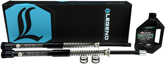 Caracteristicas: Available in standard models only Easy installation Includes 2 mono-tube, dual chambered damper cartridges Nitrogen chambers with internal floating pistons Performance spring rate Machined 303 Stainless threaded pre-load adjuster Increased pre-load range allows fine tuning for various riding styles and weights Ride quality is smooth and controlled Improves stability, cornering and traction Eliminates front-end dive during aggressive braking and maneuvering Firm feel for high-speed sweeping turns Eliminates bottoming out on large bumps or potholes Designed for optimum performance with Legend rear suspensions Includes Maxima Racing Oil in cartridge and quart bottle Lifetime Warranty Made by hand in Sturgis, SD USA WARNING: Cancer and Reproductive Harm - www.P65Warnings.ca.gov