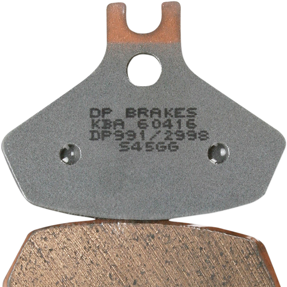 Caracteristicas: DP Brakes Brake Pads are designed with sintered metal compounds to give your ATV high-tech performance in all conditions Pads have a quick break-in period so you get maximum performance fast DP Brakes design and materials ensure consistent, hard stops and fade-free performance Sintered metal compounds outlast more conventional organic or aramid fiber pads Use DP Brakes Rotors in conjunction with DP Brakes Brake Pads for the ultimate in braking performance GG-friction rated and made with DP Brakes' proven sintered-metal material Gray-colored aluminum oxide-based ceramic material on rear of back plate keeps heat away from caliper piston and fluid in extreme conditions for fade-free performance Pad compound gives equal performance in wet or dry conditions The ideal replacement pad where durability is the prime requirement TUV/KBA approved to EEC braking regulation 13/05 Bright, attractive pegboard packaging