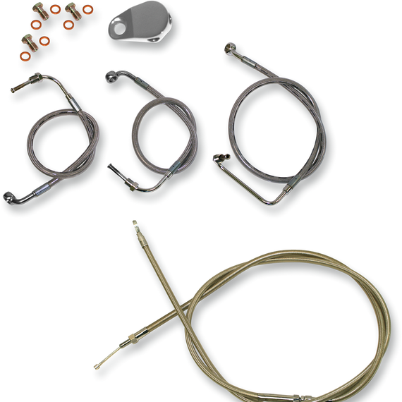 Caracteristicas: Take "cable calculation" headaches out of swapping handlebars Standard kits include the correct length brake/clutch lines and wire extensions to complete a handlebar swap; electrical wire extensions not included (available separately) Standard kits include clutch line, brake lines, chrome "T" brake line junction, banjo bolts, fittings and copper crush washers Made in the U.S.A. Kits are based on using 2" risers with Ape Hanger handlebars
