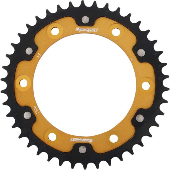 Caracteristicas: Supersprox-Stealth gives you longer system life without compromising weight Steel teeth last 4 times longer than aluminum Pound-for-pound, the strongest sprocket on the market The aluminum core is 70% lighter than steel Forging rivets into the sprockets provide exceptional strength Designed for bikes up to 1400cc in displacement
