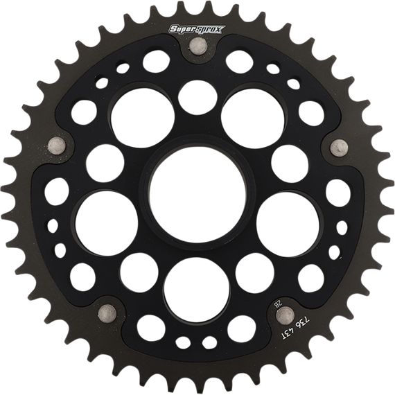 Caracteristicas: Supersprox-Stealth gives you longer system life without compromising weight Steel teeth last 4 times longer than aluminum Pound-for-pound, the strongest sprocket on the market The aluminum core is 70% lighter than steel Forging rivets into the sprockets provide exceptional strength Designed for bikes up to 1400cc in displacement