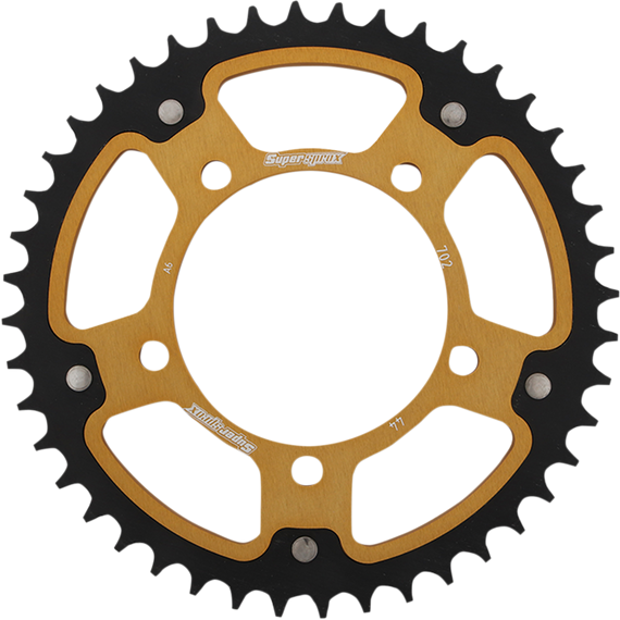 Caracteristicas: Supersprox-Stealth gives you longer system life without compromising weight Steel teeth last 4 times longer than aluminum Pound-for-pound, the strongest sprocket on the market The aluminum core is 70% lighter than steel Forging rivets into the sprockets provide exceptional strength Designed for bikes up to 1400cc in displacement