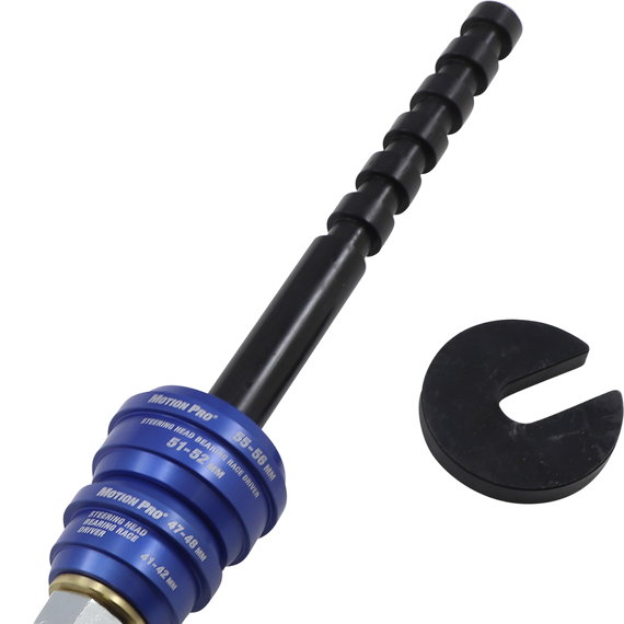 Caracteristicas: Fits tapered steering bearings 41-42 mm, 47-48 mm, 51-52 mm and 55-56 mm Works on all frames with head tube between 100 mm to 240 mm in length Quick adjustment slotted puller rod for quick installation Safely installs the tapered bearing race in the frame Innovative double sided drivers