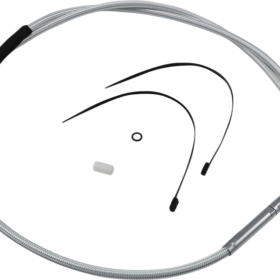 Caracteristicas: Sterling Chromite® II uses patented technology to look like chrome Braid color and weave match on all Magnum control cables and brake lines Coated with a non-yellowing, crystal clear FEP fluoropolymer outer jacket for exceptional protection against scuffing paint or chrome Low-effort, high-efficiency cable design meets or exceeds all OE specifications for fitment, construction, and endurance All fittings are polished and chrome plated Attractive adjuster with integrated water resistant seals does not require a boot Rubber seal in transmission fitting eliminates fluid leaks All cables are factory lubricated for smooth, consistent, long-lasting operation Assembled in the U.S.A. Late style cables are measured with the adjuster completely collapsed