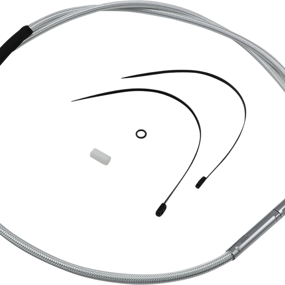 Caracteristicas: Sterling Chromite® II uses patented technology to look like chrome Braid color and weave match on all Magnum control cables and brake lines Coated with a non-yellowing, crystal clear FEP fluoropolymer outer jacket for exceptional protection against scuffing paint or chrome Low-effort, high-efficiency cable design meets or exceeds all OE specifications for fitment, construction, and endurance All fittings are polished and chrome plated Attractive adjuster with integrated water resistant seals does not require a boot Rubber seal in transmission fitting eliminates fluid leaks All cables are factory lubricated for smooth, consistent, long-lasting operation Assembled in the U.S.A. Late style cables are measured with the adjuster completely collapsed