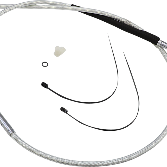 Caracteristicas: Sterling Chromite® II uses patented technology to look like chrome Braid color and weave match on all Magnum control cables and brake lines Coated with a non-yellowing, crystal clear FEP fluoropolymer outer jacket for exceptional protection against scuffing paint or chrome Low-effort, high-efficiency cable design meets or exceeds all OE specifications for fitment, construction, and endurance All fittings are polished and chrome plated Attractive adjuster with integrated water resistant seals does not require a boot Rubber seal in transmission fitting eliminates fluid leaks All cables are factory lubricated for smooth, consistent, long-lasting operation Assembled in the U.S.A. Late style cables are measured with the adjuster completely collapsed