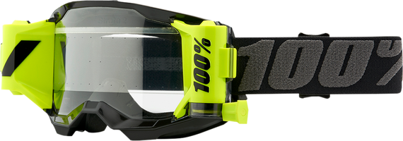 Caracteristicas: Prebuild to tackle the muddiest conditions Curvature suited for comfort and great field of vision Constructed out of flexible yet durable urethane Comes equipped with anti-fog, scratch resistant polycarbonate lens for unimpaired vision Plush, dual-layered face foam soaks up sweat 40mm silicon coated strap holds your goggles in place in wet conditions In the box are mud flas, 2 rolls of film and a sublimated micro fiber bag Improved fitment and seal with increased field of view Supports triple post tear-offs for secure fitment 9-point lens retention system secures lens in frame Racecraft 2/Accuri 2/Strata 2 utilize same lens and tear-offs Filter Category 0 Light Transmission 88%-92%