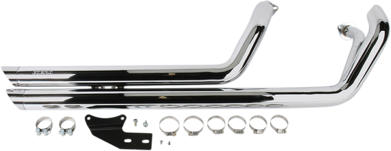 Caracteristicas: Hot Rod simplicity with Speedster style Large 2.5", 222° heat shields fit from the exhaust ports to the chrome billet tips for a seamless look and non-bluing finish Gives overall power increase with improved rideability Easy installation with all mounting hardware included Made in the U.S.A.