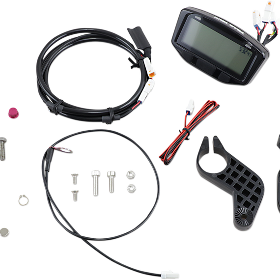 Caracteristicas: Speed/Distance/Voltage/Temperature/Clock Speedometer functions: current, average, maximum; selectable MPH/KPH Distance functions: trip, odometer, adjustable distance; selectable mile/kilometer Voltage function: voltage, maximum, minimum Temperature functions: engine temp, ambient temp, max engine temp, temp with LED alerts, model-specific sensors; selectable F/C scale Clock functions: hour meter, stop watch, ride time, accumulated ride time; selectable 12/24 hour display Maintenance: oil reminder, wrench reminder Power input: accepts any power input AC/DC, auto-switch to internal battery, permanent memory (data never lost) Waterproof design with high-intensity LCD white backlight display Optional top-mount gauge mount available separately - See Related Products