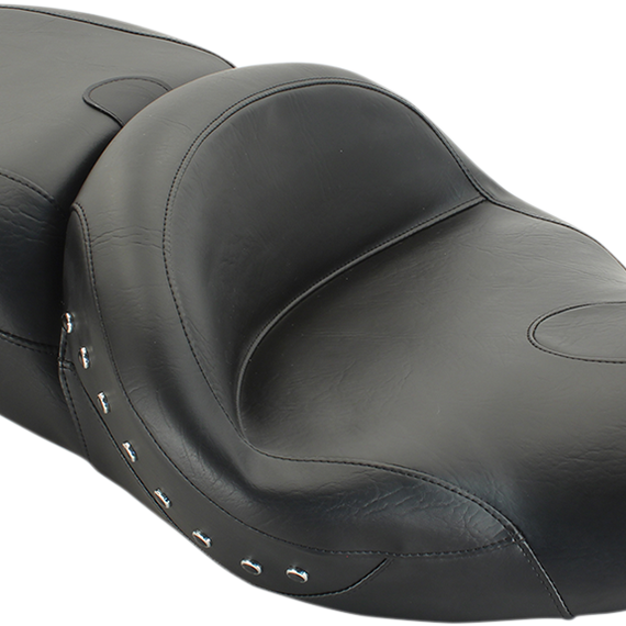 Caracteristicas: Super comfortable touring design provides rider and passenger with the fullest, most comfortable seat possible Super front bucket seat sits the driver 1.75" further back than the stock seat Includes receiver for optional driver backrest (backrest must be purchased separately) Triple-layered fiberglass seat pan Expanded black vinyl cover Made in the U.S.A. Will fit with a handrail.