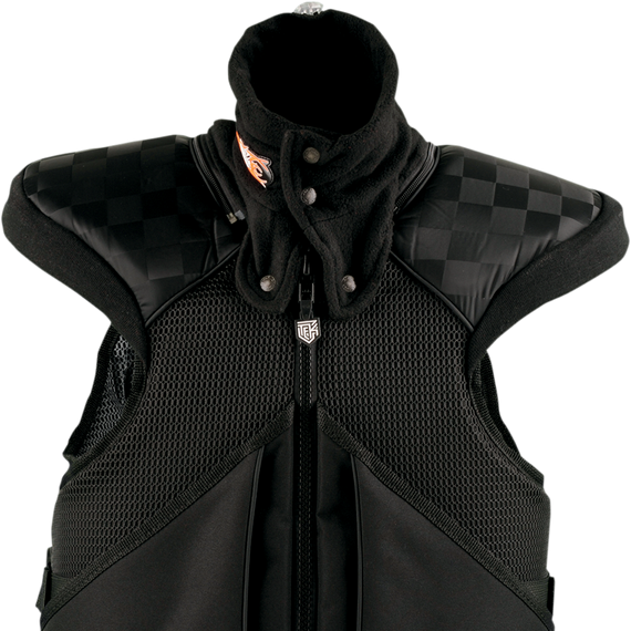 Caracteristicas: Designed for all trail riders and can be made race-legal by adding shoulder pads Waterproof front shell and nylon mesh back; closed-cell foam for race-proven protection Closed cell foam and UHMW plastic laminate armor provide eight times the protection of HDPE panels Zip-off fleece collar keeps neck warm, diffuses rising heat and reduces fogging Convenient front zipper access and handy reverse-entry, two-stage pocket design Can be worn over a light jersey or under a snowmobile jacket 4" of waist adjustment ISR legal for drags, oval and radar runs; add optional shoulder pads for use in cross country or snocross racing All-black fabrics for a richer, technical look With TEK4D-360° coverage Provides back support and “electric blanketâ€- type warmth for the lower back and kidney areas for cold weather riding Spreads the load of your backpack straps Action-cut for the full range of motion that any snowmobiler, dual sport, enduro , ADV or ATV rider will experience Works best with 3 in 1 jacket products with a zip out lining Wind stopping and insulating product — acts as a mid-layer clothing option Hand crafted in Canada with all armor componentry made in the USA