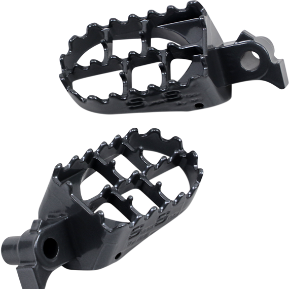 Caracteristicas: Wider than stock for sure-footed comfort Cast from stainless steel - not welded Serrated for positive footing, but points are rounded for safety