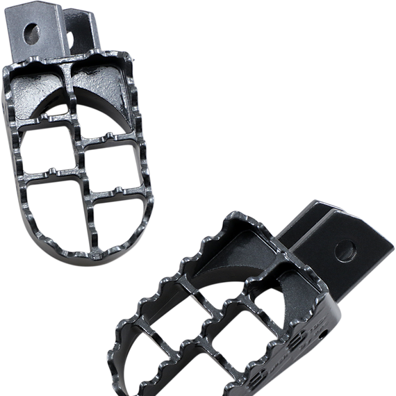 Caracteristicas: Wider than stock for sure-footed comfort Cast from stainless steel - not welded Serrated for positive footing, but points are rounded for safety