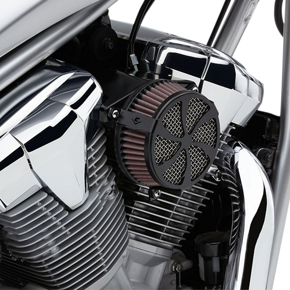 Caracteristicas: The Cobra system consists of a laser-cut, formed steel cover, separate mounting ring, and all the fasteners, seals, backing plate and mounting hardware for easy installation Flow better than stock or competing units, in large part because of its unique internal venturi design of the inner filter High-flow K&N® Air Filter element ensures the maximum air intake and protection Slim profile keeps the unit away from the rider’s leg Formed stainless steel mesh insert Optimize overall performance Made in the U.S.A.