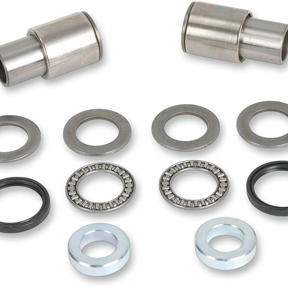 Caracteristicas: Restore handling and suspension control lost due to worn or rusted swingarm components Convenient kit eliminates looking up many part numbers Each kit contains bearings, pins, collars and seals manufactured to OEM specifications for a perfect fit Considerable savings over OEM prices