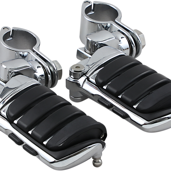 Caracteristicas: Include choice of ISO®-pegs on 1-1/4" Magnum Quick Clamps Install on any round tubing Fit 1-1/4" engine guards or tubing When installed, footpegs will be perpendicular to the bar it is mounted to