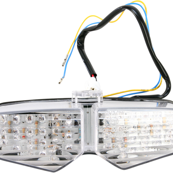 Caracteristicas: Feature the newest technology super-bright LEDs, rated for up to 40,000 hours Integrated turn signals are built into the taillight, which can be used by themselves or as auxiliary lights depending on local laws Exclusive security LED stays lit for hours after the bike is turned off, adding visibility and discouraging thieves OEM connectors, no need to cut or splice wires For BMW bikes, relays are included in the taillight that replicate the load of the turn signal and prevent the BMW CAN-bus system from dimming the gauge panel or causing CEL faults Include park light Tail and brake light functions are DOT compliant