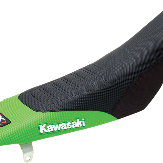 Caracteristicas: The first specifically designed seat cover kit for today's 4-strokes Feature Dura-Grip material that has integrated embossed top seat ribs that keep you positioned on the seat Color-matched rear panel, raised OEM logos and interlock stitching for long lasting wear Bump version features soft-cell seat foam technology for even more grip and control Easy installation; no cutting, sanding or filing required