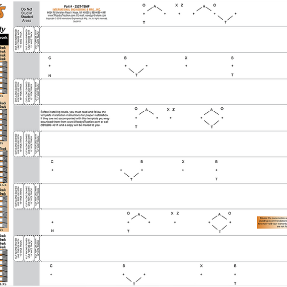 • Stud patterns on Woody's® templates are CAD-designed to maintain track balance