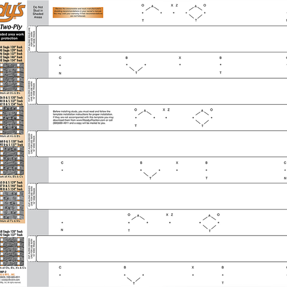 Caracteristicas: Stud patterns on Woody's® templates are CAD-designed to maintain track balance Follow the instructions and you will have the highest level of precision stud placement Printed on laminated heavy card stock