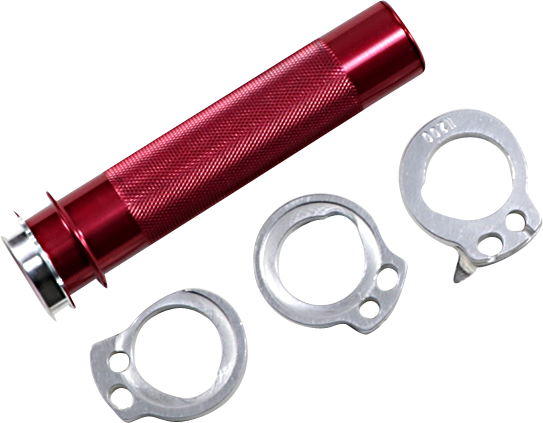Caracteristicas: Give the rider better control, no matter what the ground condition Throttle cam system alters the ratio between hand-throttle rotation and opening of the carburetor, which improves the rider's control over the bike where it matters most, in the turns System includes a 6061 billet aluminum throttle tube with a knurled surface and three cams Delrin bushings in both ends of the tube eliminate all aluminum-to-aluminum contact to give the feeling of a ball-bearing tube without rust or freeze-up Each included cam is designed with track conditions in mind; one for perfect, one for intermediate and one for slippery or highly technical conditions One cam is stock diameter, the other two have different ramped shapes, which means the rider will turn their hand slightly farther to open the carburetor while in the zero to half-throttle range; the ramped shape ensures full throttle within a quarter turn Changing cams is easily achieved in less than a minute Throttle tube has removable end cap to allow installation of handguard