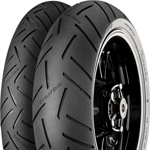 Caracteristicas: Tire design specially tuned to the new sport motorcycles for perceptibly more stable and precise handling Road grip has been improved considerably once again thanks to an enlarged contact area and technically optimized tread design Innovative “Grip Limit Feedback Technology” increases the level of safety during extreme lean angles as the rider receives feedback from the tires at an early stage in critical situations for a higher level of control at the limit The developed sport and hyper-sport tire ContiSportAttack 3 is setting new standards in handling and lean angle performance in both dry and wet conditions for all sports motorcycles Longer service life thanks to the enlarged contact area at the crown of the tire and high share of positive tread in the central belt as well as further optimization of the MultiGrip Technology With the silica compound, Continental has been able to considerably increase grip, riding pleasure and feeling of safety in the wet Substantial improvement in wet grip thanks to a specially developed tread design with significantly improved drainage effect Tubeless (TL) Blackwall