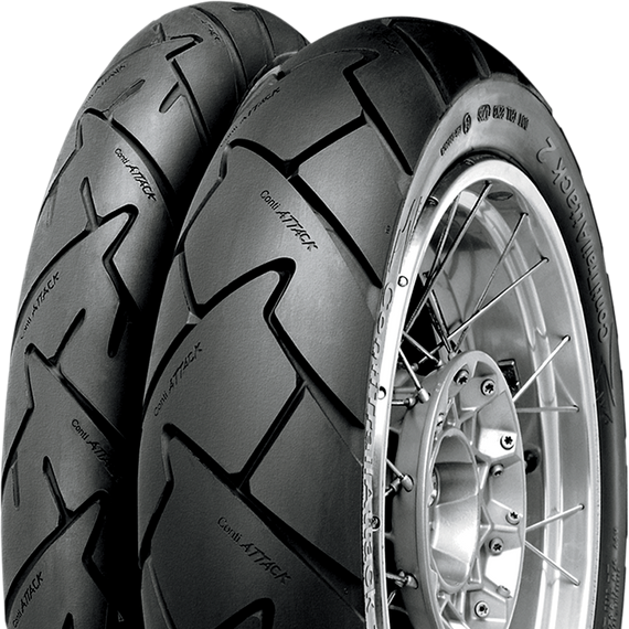 Caracteristicas: Traction Skin provides an extremely safe and short tire break-in which is possible due to the revolutionary raw tread surface; result of a new mold-coating technology which eliminates the need for tire-release agents Multi-Grip Technology makes it possible to use a homogeneous grip grading with a single compound thanks to a temperature-controlled curing of the tire during the production process Engineered to meet the demands of today’s modern powerful, high-performance adventure touring/enduro machines 0° steel-belt construction on the rear tire delivers superior stability and comfort even at high cruising speeds and high loads Reinforced carcass on the front tire utilizes a newly designed tread pattern to ensure higher precision and optimized wear Improved touring compound offers high grip in all wet and dry conditions combined with excellent mileage for long trips Advanced adventure touring/dual-sport tire for large-capacity bikes Stunning tread pattern adapted from the Conti-Attack family Exceptionally quick warm-up time Tubeless (TL) Blackwall