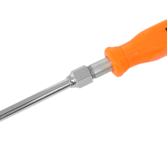 Caracteristicas: Durable, E-Z Grip handle for comfort and a positive grip Pipe-threaded end will accept airline quick-disconnect fittings Designed for use on hard-to-reach wheels Made in the U.S.A.