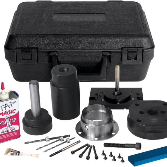 Caracteristicas: Included in kit is one new steel bearing insert sleeve (held to under .0002" total indicator reading), all necessary drill bits to drill oil feed and return holes, press plate that holds bearing sleeve insert in line with case bearing bore at time of installation, all necessary hardware and instructions It may also be used to replace bearings for stock 88" or 96" engines utilizing the special JIMS precision insert Sleeve is several times stronger than stock aluminum case material that standard bearings ride in This tool is a must for the big-cubic-inch late-model Twin Cam engine builder Requires normal hand tools, hand drill and two-ton press Timken bearing not included Made in the U.S.A.